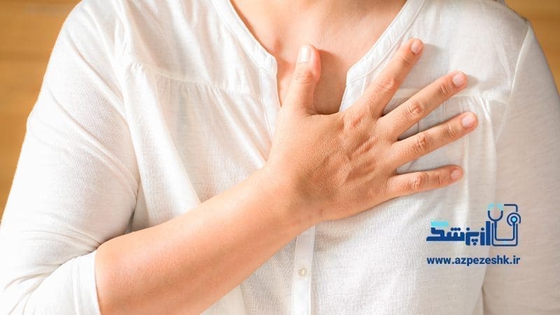 - احساس ناراحتی در قفسه سینه؛ شامل فشار، تنگی، درد، سوزش یا سنگینی